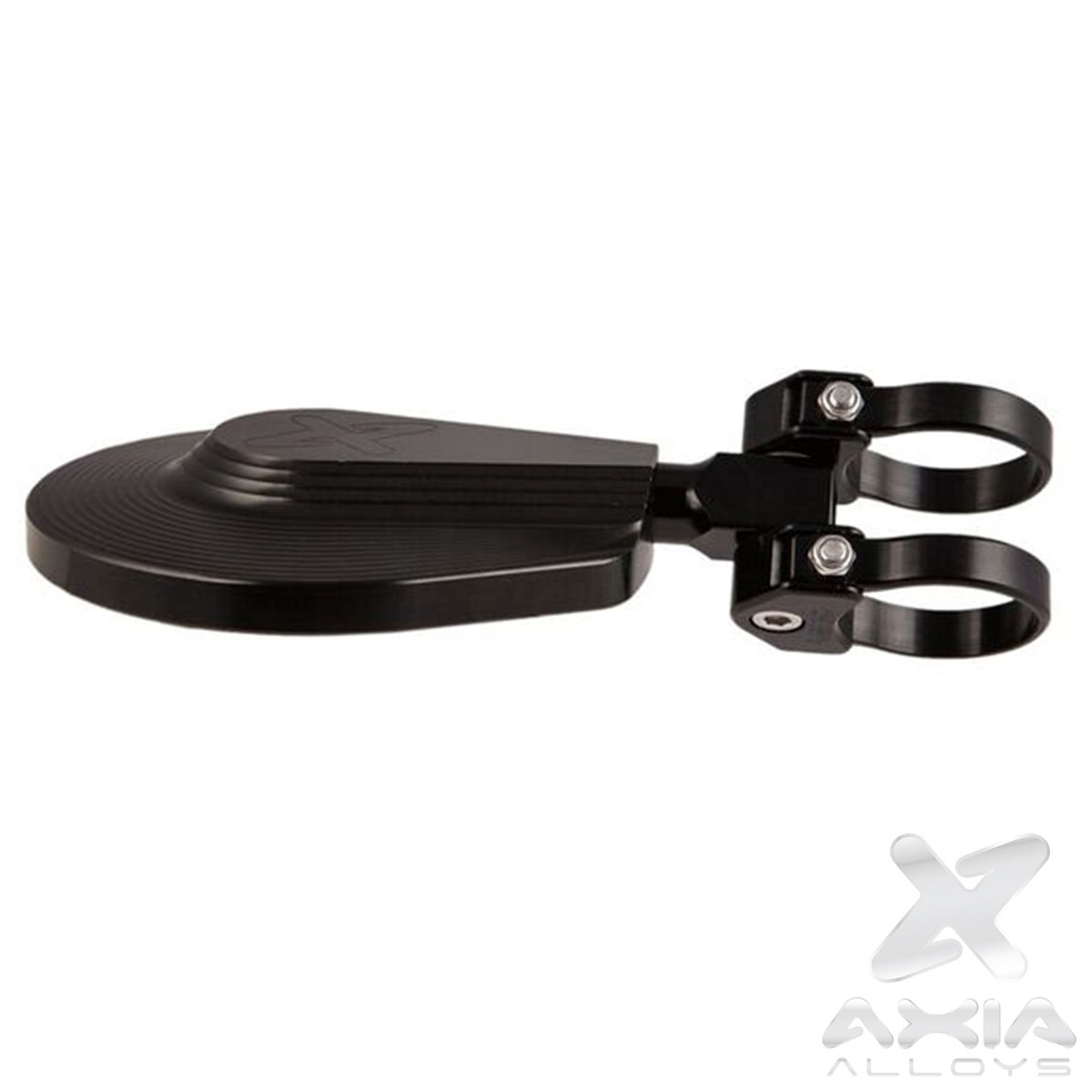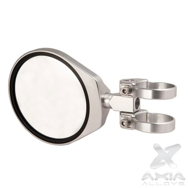 The Axia Alloys 6″ convex glass folding side mirrors are fully adjustable on the fly with adjustalbe tension at all pivot points. The scratch resistant convex glass is housed in a billet aluminum housing. These side mirrors are just under 6″ wide x 5″ tall and stick out 7.5″ from the outside edge of the mounting tube. Extremely Strong Billet Aluminum construction. The best of the best. No plastic mounted housings with sloppy ball mounts like the competition. Mirrors will mount on a vertical, horizontal, or tube of any angle. SOLD EACH We offer a liftime warranty on all our mirrors against breakage. FREE REPLACEMENT of your mirror insert. |