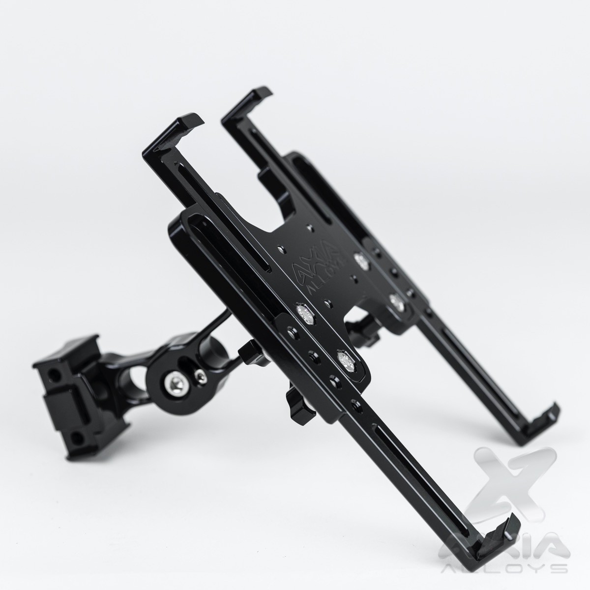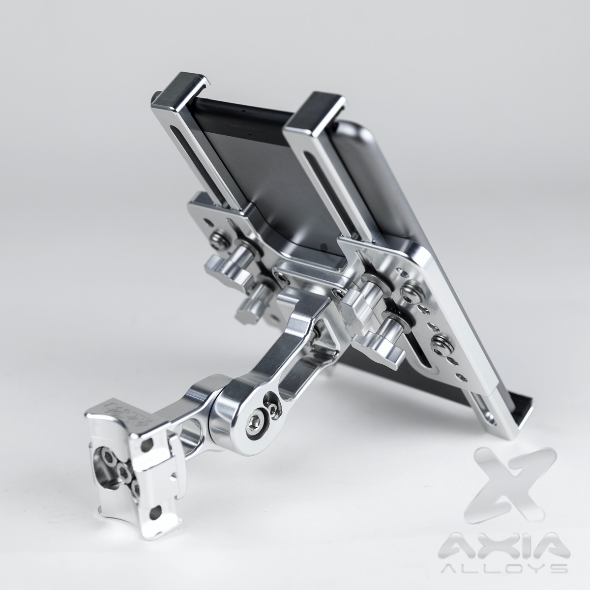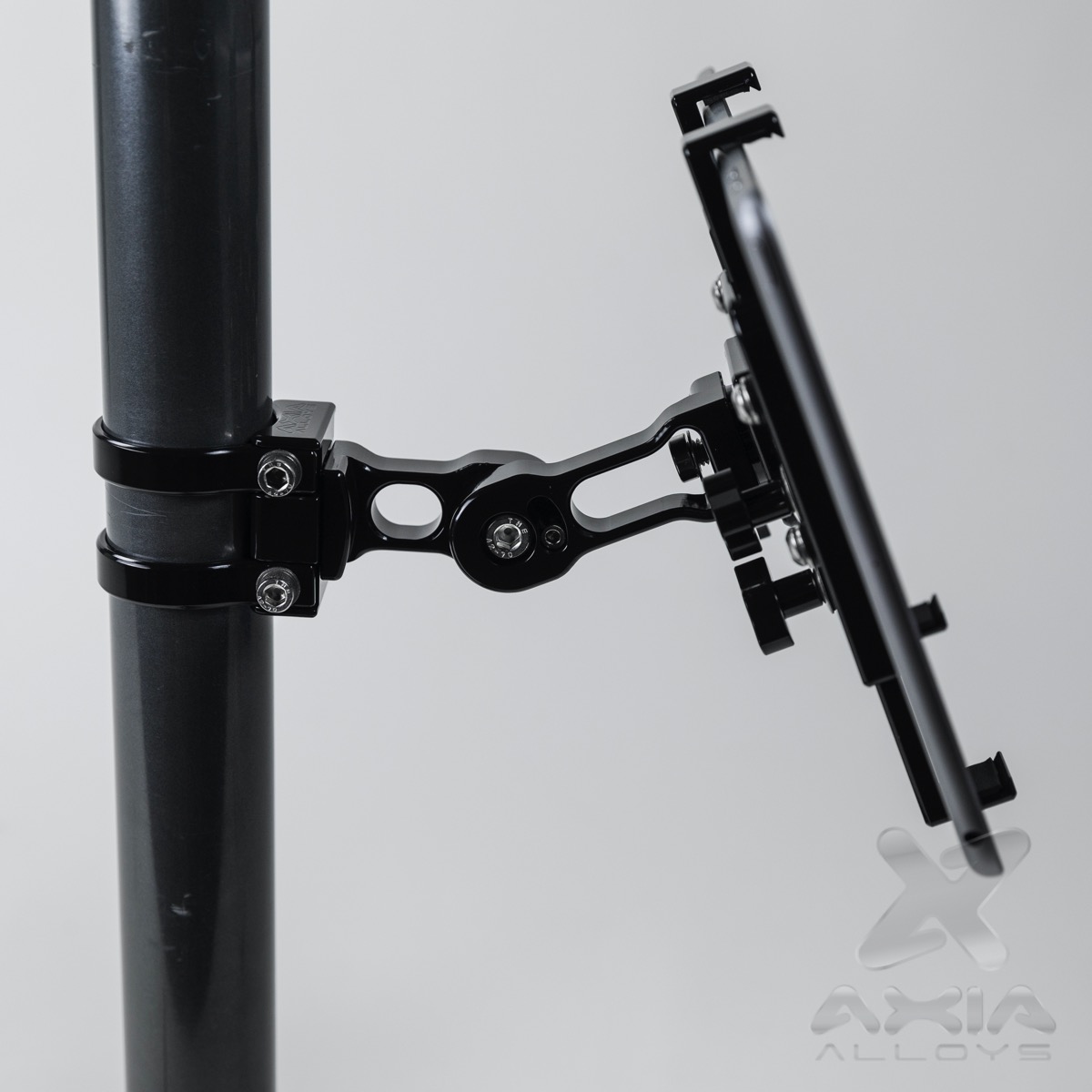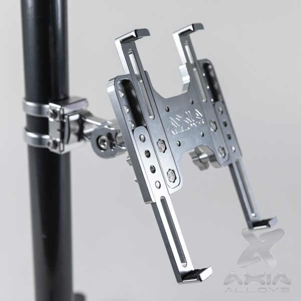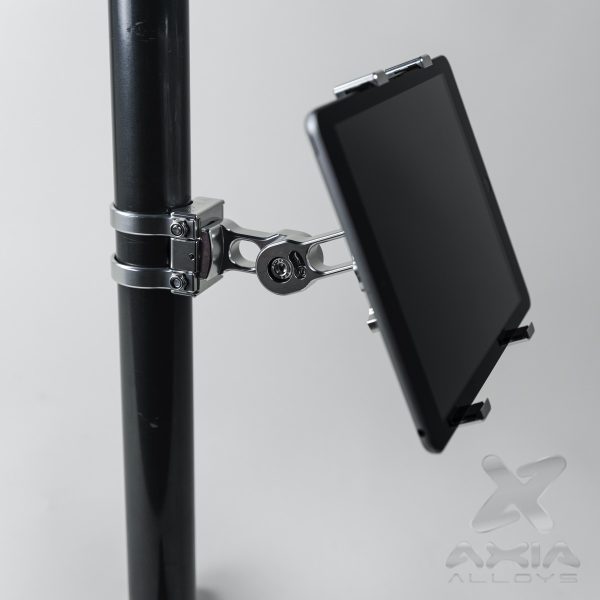 The machined aluminum cradle itself is a multi-adjustable design to allow almost any sized tablet to be securely mounted, yet easily removed simply using the 4 thumb screws on the back. The clamp dimensions are infinitely adjustable between 5.8125″ and 10.5″ in height.With the four different clamp styles, the tablet mounting arm base can be mounted to essentially anywhere. Whether it be round tube, square tube, OEM UTV profile-style cages, or even any other flat surface our clamp options and adjustable arm allow for ideal viewing angles from any vertical, horizontal, or surface of any angle.
