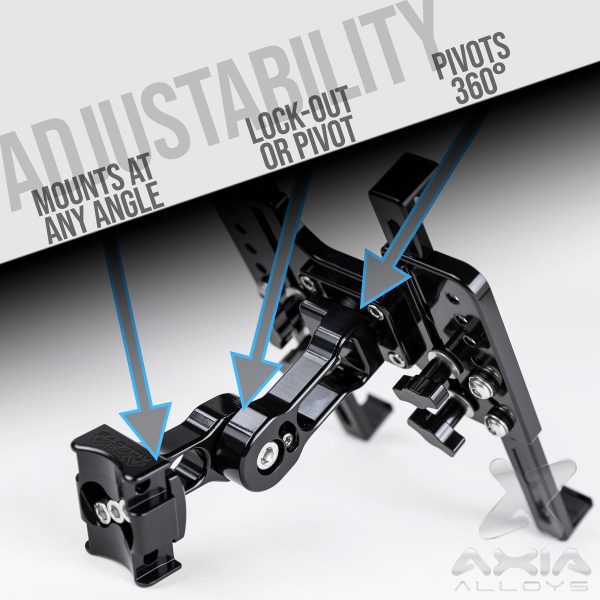 - All arm pivot points, including the optional 4.0″ or 6.0″ extensions, can be locked into position or left to pivot