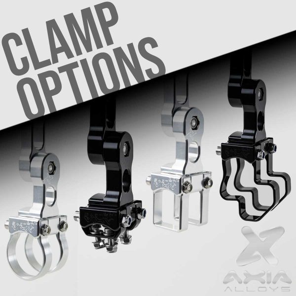- Base clamp adapter rotates a full 360’ (Base will not pivot on the fly as it only locks into any position upon installation)