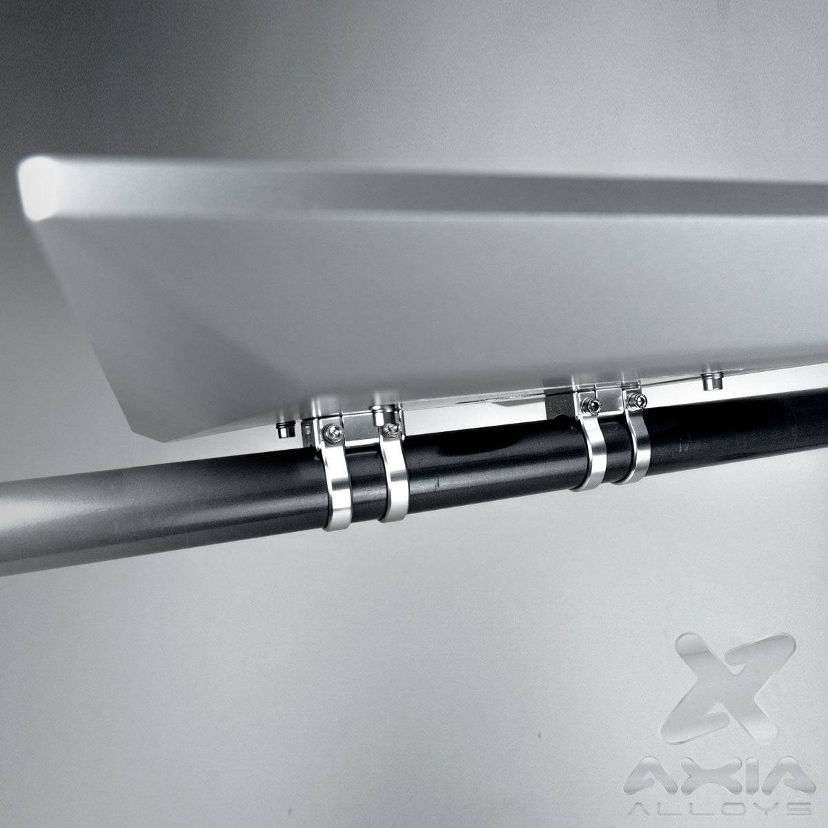 Choose from Axia’s full range of patented clamps to match your setup: round clamps from 0.75″ to 3.25″, square clamps in 0.75″, 1.00″, and 1.25″ sizes, or the flat-surface clamp for bulkhead or wall mounting. Every option ensures a secure fit while keeping the footprint as minimal as possible.